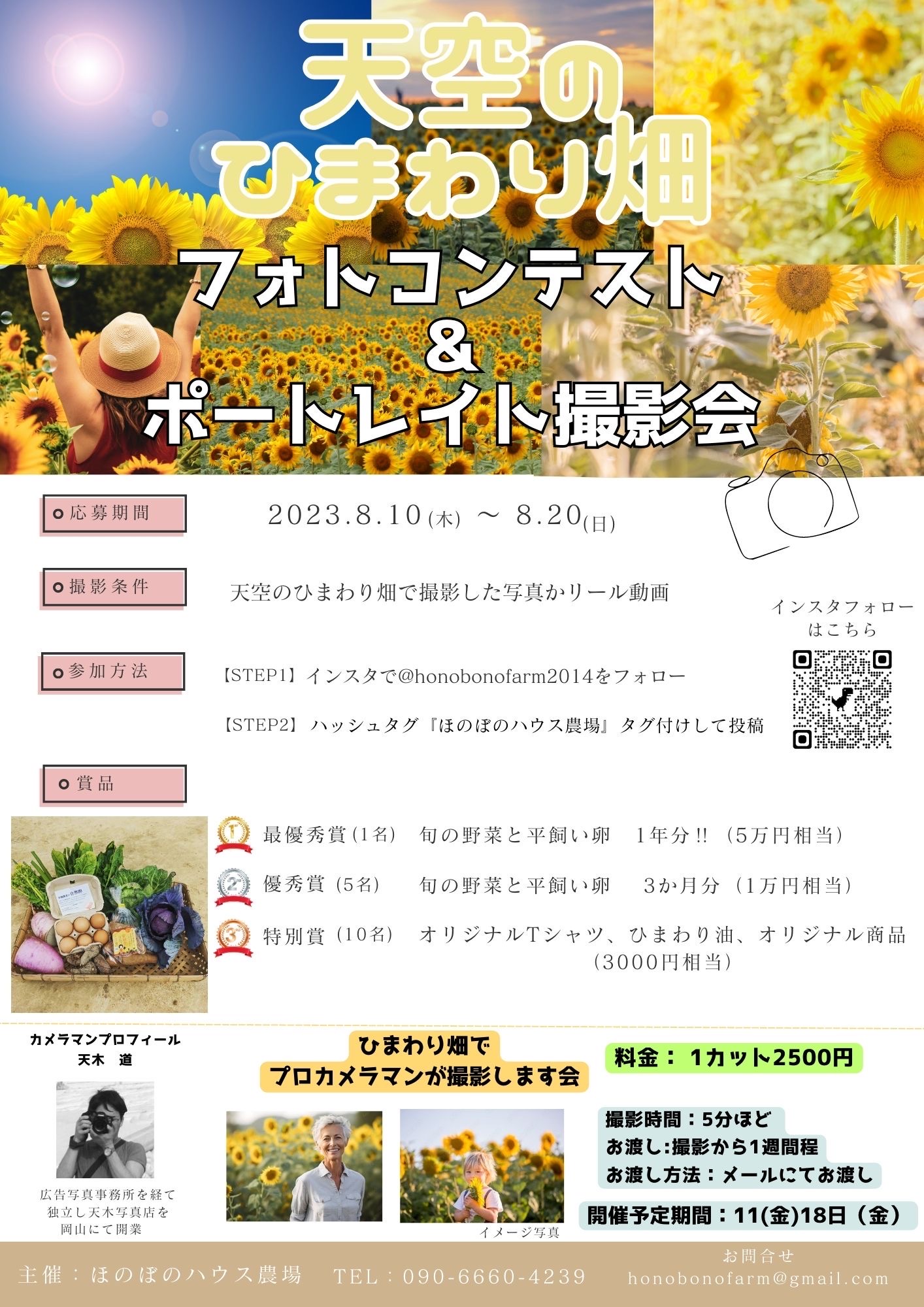 ほのぼのひまわり畑フォトコンテストもありますので、是非お越しください。